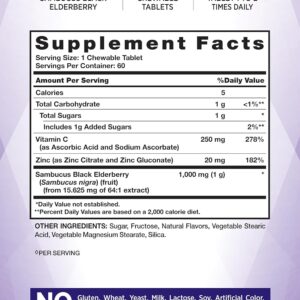 Nature’s Truth Black Elderberry Immune Complex | 60 Chewable Tablets | Plus Vitamin C & Zinc | Natural Mixed Berry Flavor | Vegetarian