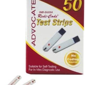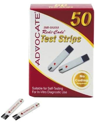 The ADVOCATE Redi-Code Plus Blood Glucose Test Strips are used for the accurate monitoring of blood glucose testing. Advocate Redi-Code test strips feature an easy to open flip top bottle with technology to keep test strips fresh for a longer period and to make usable for people of all ages. Advocate Redi-Code test strips require no coding and are alternate-site testing approved for maximum convenience. The ADVOCATE Redi Code Plus Blood Glucose Test Strips are used for the accurate monitoring of blood glucose levels