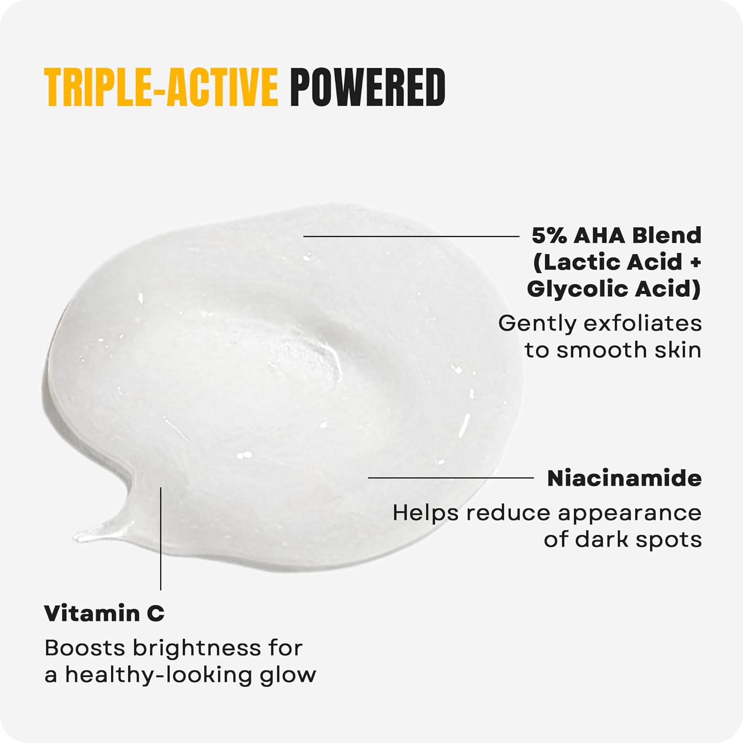 - Exfoliation-first formula featuring a powerful 5% AHA blend clears away dull, dead surface cells so brightening ingredients can work harder