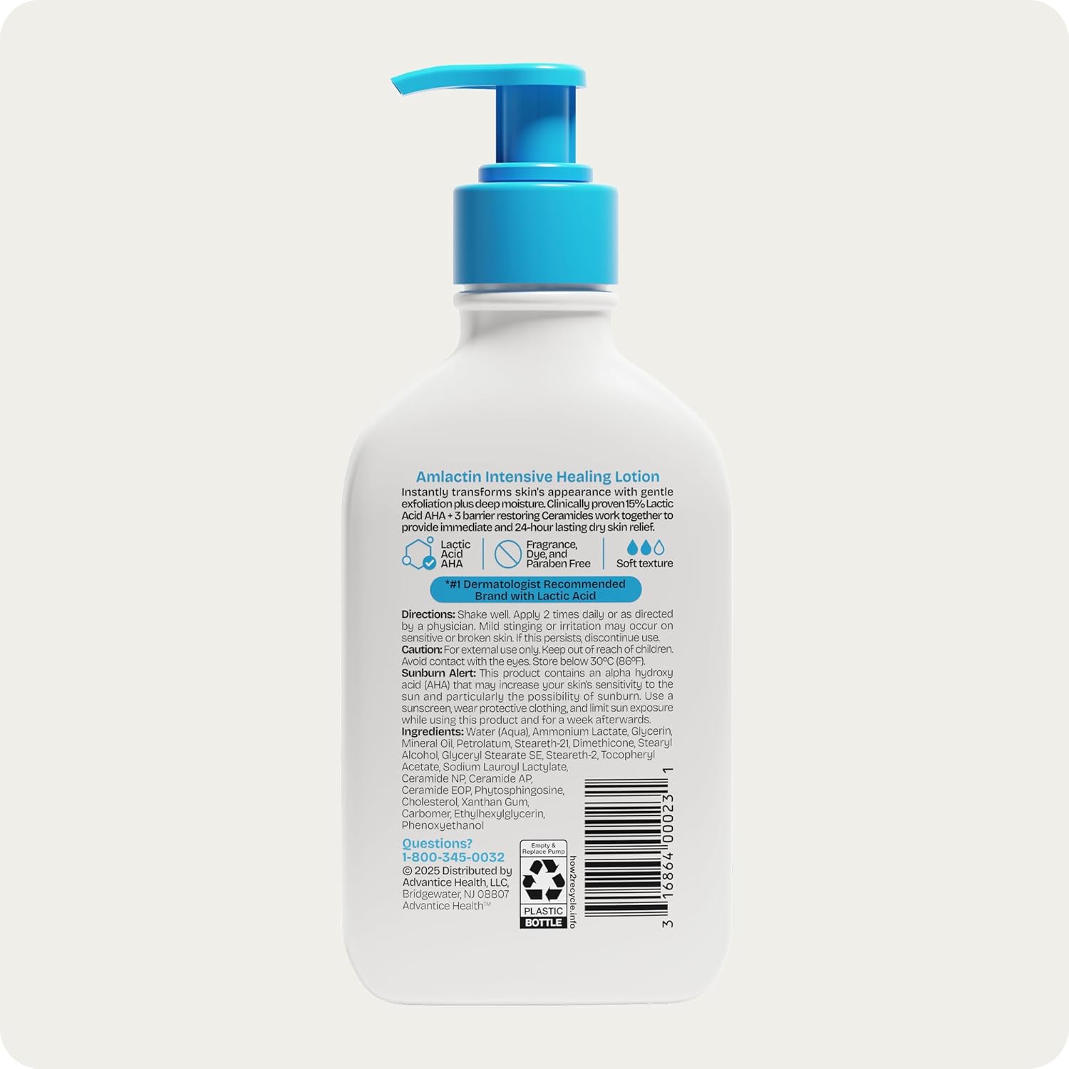 AmLactin Intensive Healing Body Lotion – Therapeutic Lotion for Extremely Dry Skin – No-Scrub Exfoliator and Moisturizer with 15% Lactic Acid AHA and Ceramides, 7.9 oz (Packaging May Vary)