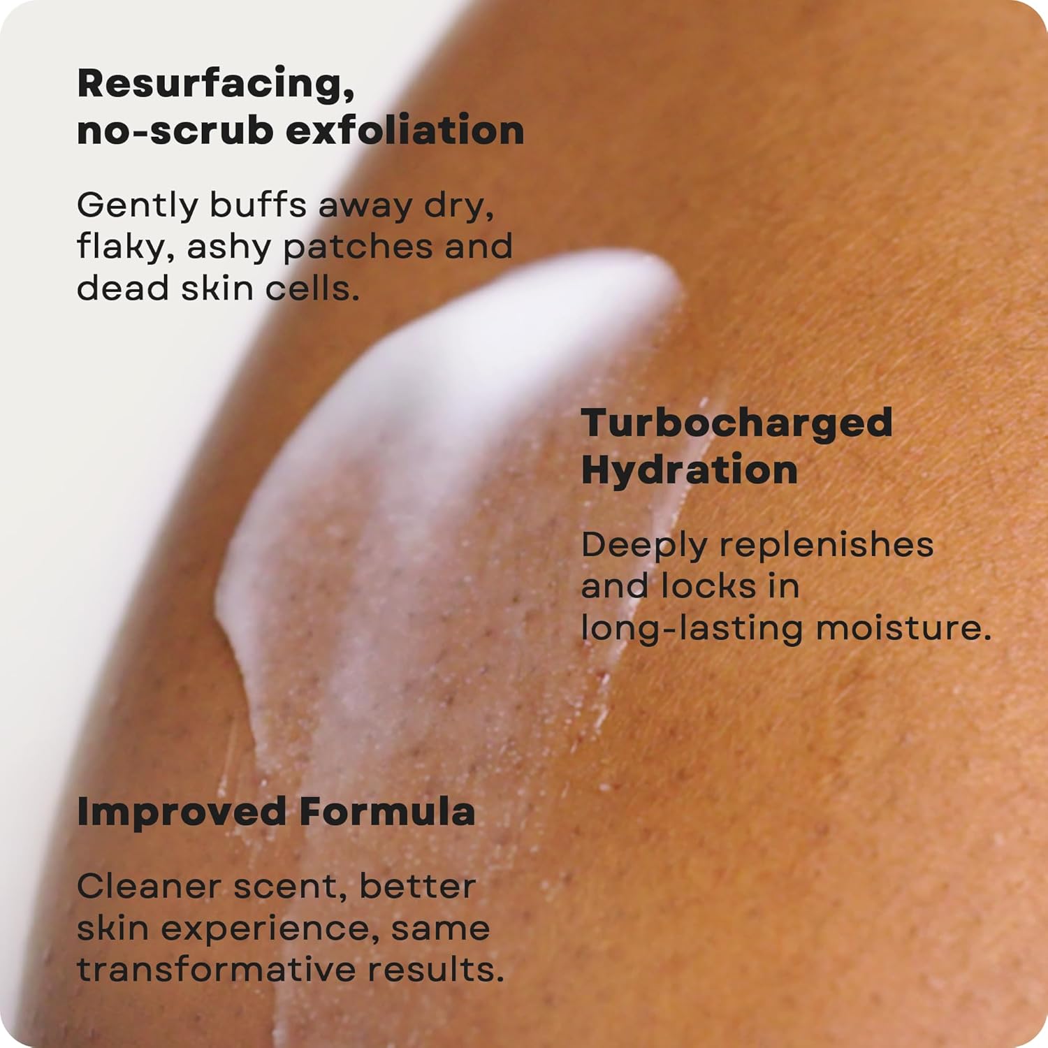 - It’s not just lotion, it’s skin therapy: Our powerful exfoliating body lotion instantly transforms skin’s appearance and boosts healthy skin renewal with resurfacing no-scrub exfoliation, deep moisturization, and skin barrier support