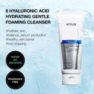 ANUA Hydrating Gentle Foaming Cleanser, Hyaluronic Acid, Glycerin, Zinc, Panthenol, Korean Face Wash for Dry Skin, for Double Cleansing, Korean Skincare (150ml/5.07fl oz.)
