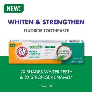 Arm and Hammer Essentials Whiten and Strengthen Fluoride Toothpaste, 100% Natural Baking Soda, Fresh Mint, 4.3 Oz