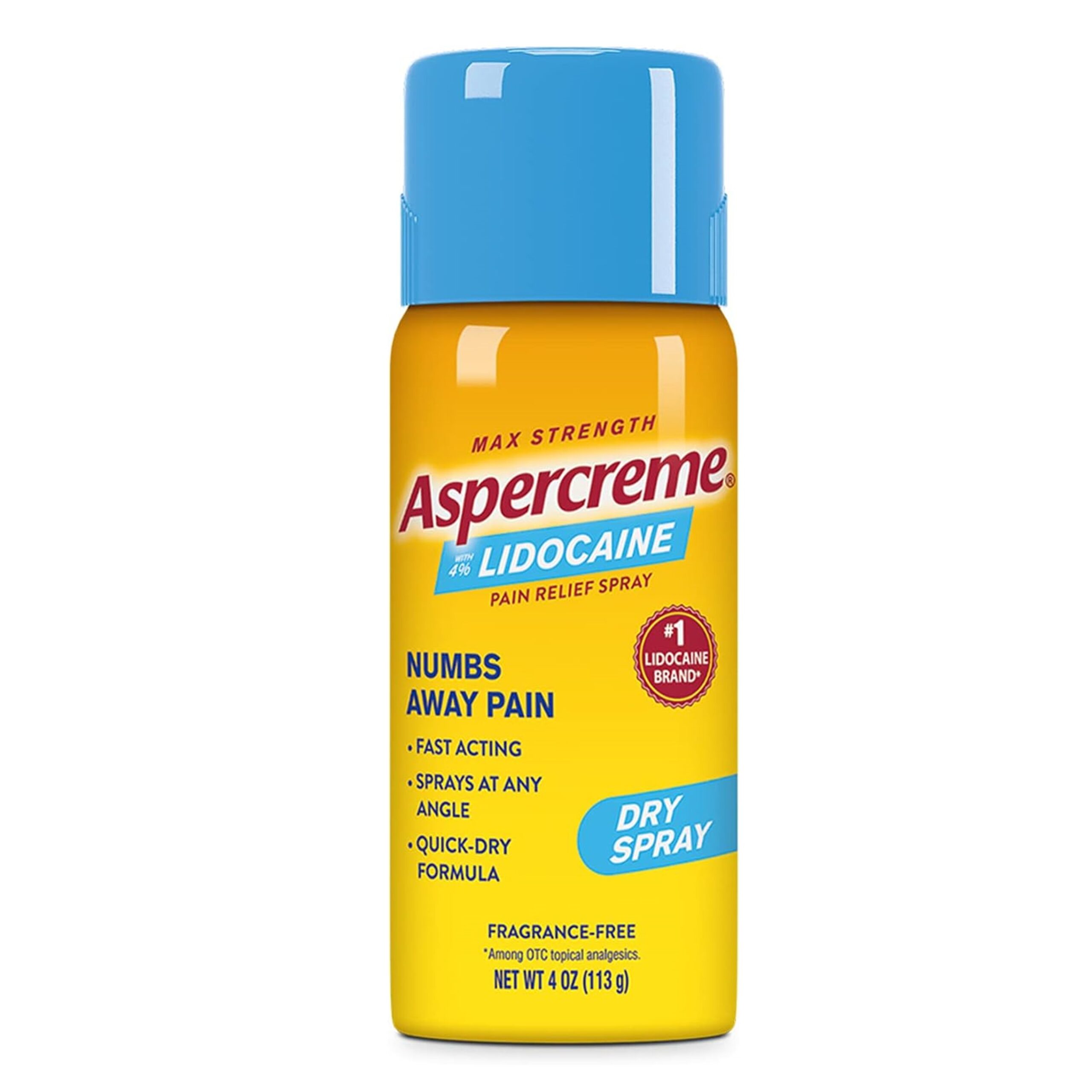 - Max Strength Pain Relief: Aspercreme Pain Relief Dry Spray With Lidocaine numbs tough muscle pain, joint pain and back pain