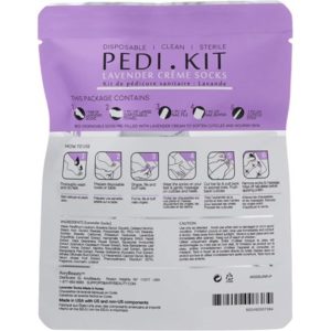 100% disposable pedi kit is an exclusive line of waterless nail care system, promoting safe spa experience. Every kit is designed to minimize the risk of cross-contamination and infections. Included waterless pedicure socks are filled with silky and deep conditioning moisturizer, contains a rich blend of Shea Butter. Made WITHOUT Synthetic Dyes, Parabens and Animal-based Ingredients