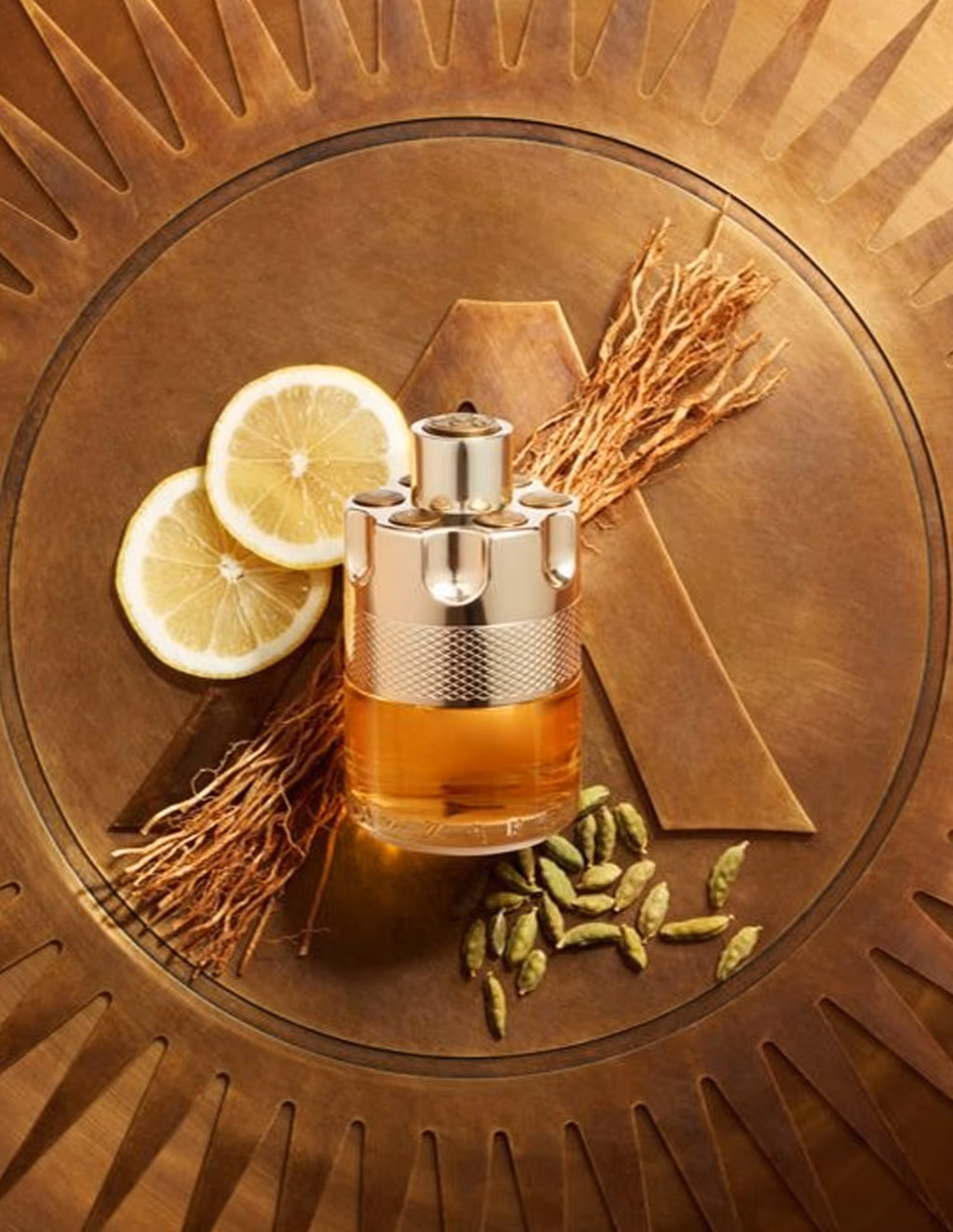 - This woody citrus and spicy fragrance, composed of explosive lemon, energizing cardamom and vetiver, is for the man who dares to live life to the fullest. In the “spicy-woody-citrus” family, the Azzaro Wanted perfume dares, driven by flamboyant ingredients, including two raw materials originating from sustainable development.