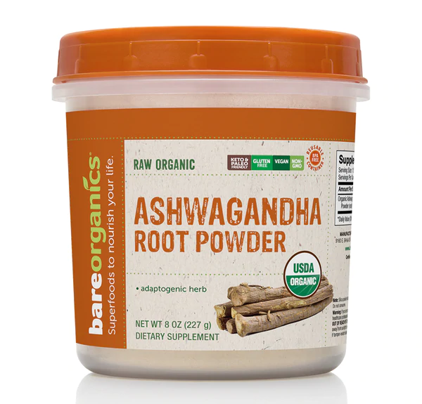 BareOrganics Ashwagandha Root Powder, 8 Oz (Packaging may vary)