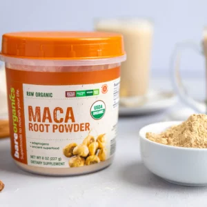 Maca is often regarded as a highly adaptogenic food, which are thought to help the body adapt to stress and support stamina. Its earthy taste is slightly nutty with a hint of butterscotch, making it an easy and delicious addition to smoothies, various milks, flour for baking recipes, and more.