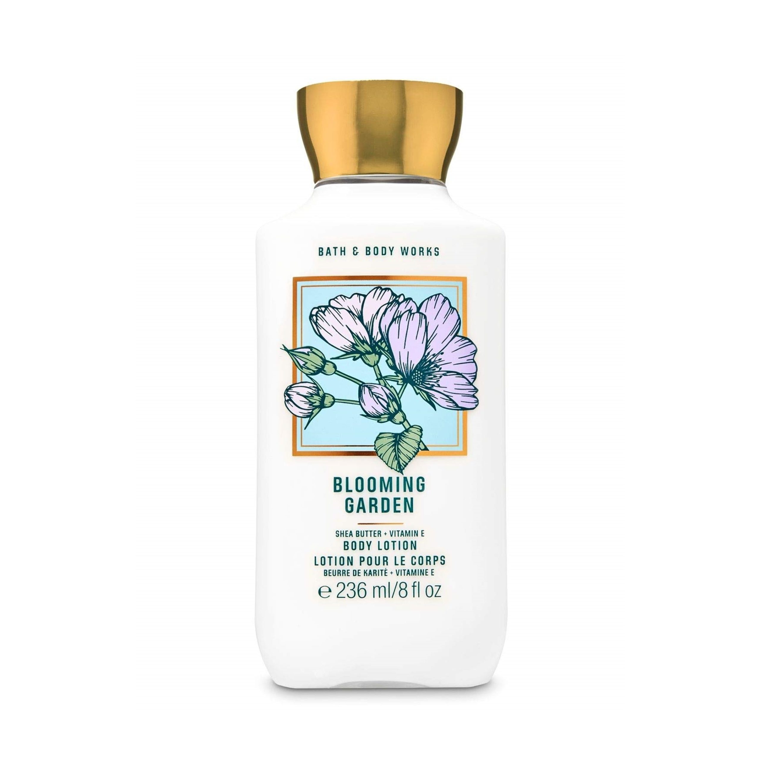 Bath and Body Works Blooming Garden Body Lotion, 8 Fl Oz, 24 Hour Moisture Shea Butter & Vitamin E, Enjoy spring’s fresh florals just picked in the morning dew. Our Super Smooth Body Lotion provides 24 hours of nourishing moisture — guaranteed! Infused with shea butter & vitamin E, it absorbs quickly into skin, so it feels noticeably softer after use.