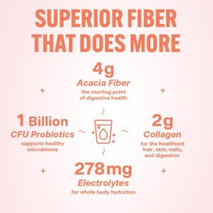 FOUR GUT HEALTH BENEFITS: Tackle hydration, energy, skin health and digestion with a four-in-one fiber supplement. In addition to fiber, BelliWelli contains collagen to support skin & hair health, electrolytes for whole body hydration and probiotics to restore healthy gut flora.