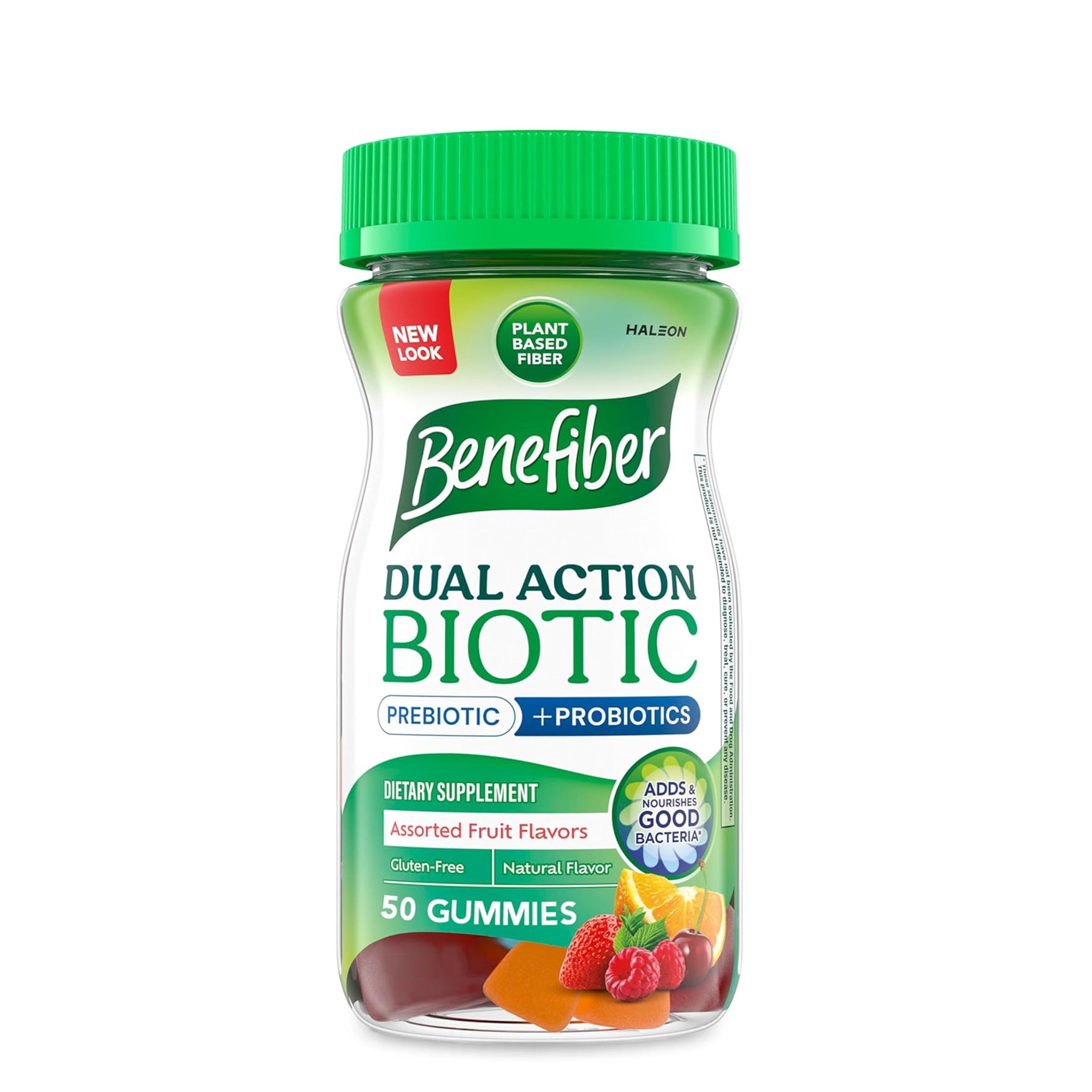 Benefiber Prebiotic Fiber Supplement Gummies with Probiotics for Digestive Health, Assorted Fruit Flavors – 50 ct (Packaging May Vary)
