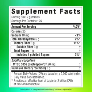 - Gummy supplements contain the plant based prebiotic ingredient Inulin and the probiotic Bacillus coagulans (Lactospore(R))