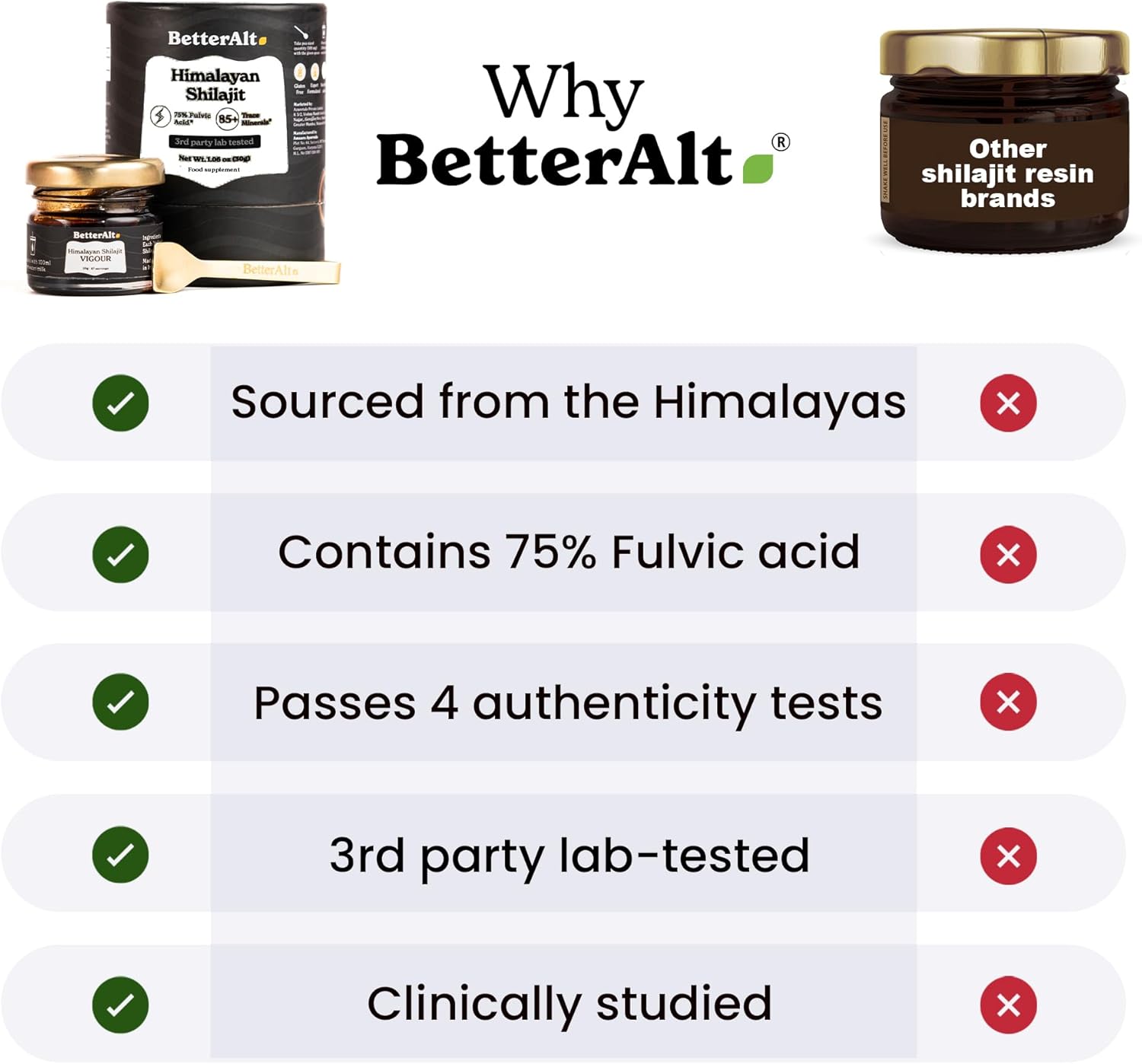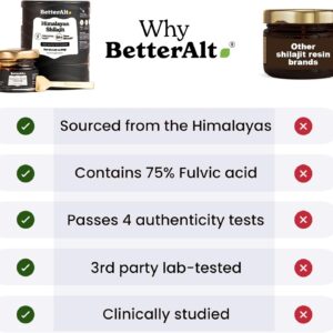 - COMPLETE WELLNESS ENHANCEMENT: Better Alt Pure Himalayan Shilajit resin authentically elevates your overall well-being by rejuvenating physical vitality, sharpening mental clarity, and fortifying your immune system. It’s an authentic addition to your daily health routine.Shilajit for men and women