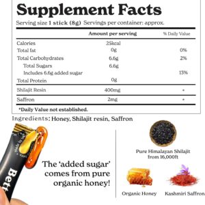 Better Alt Pure Himalayan Shilajit Sticks with Organic Honey, Saffron | Easy to Consume Shilajit| 30 Sticks for Energy Boost & Immune Support, 85+ Trace Minerals, 75%+ Fulvic Acid