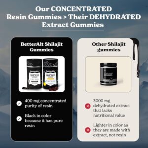 BetterAlt Pure Himalayan Shilajit Gummies with 100% Shilajit |High Potency Gold Grade| 60 Gummies for Energy Boost & Immune Support, 75%+ Fulvic Acid| Travel Friendly – Tamarind Flavor