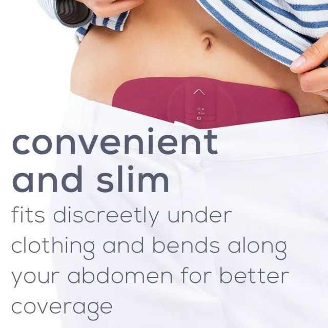 EM50 combines TENS technology with soothing heat for drug-free relief from period cramps. TENS units send small electrical impulses to the muscle which block the pain signals to the brain. Molds to your body and fits discreetly under clothes. Wear it out and about, and no one will know. USB rechargeable and reusable.