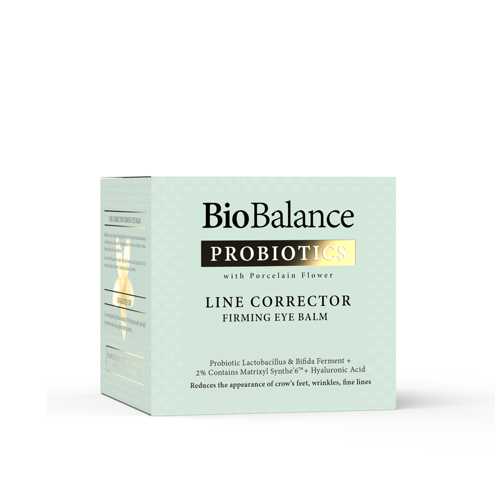 Probiotics powered Line Corrector Firming Eye Balm smooths away wrinkles and fine lines around the eye contour
