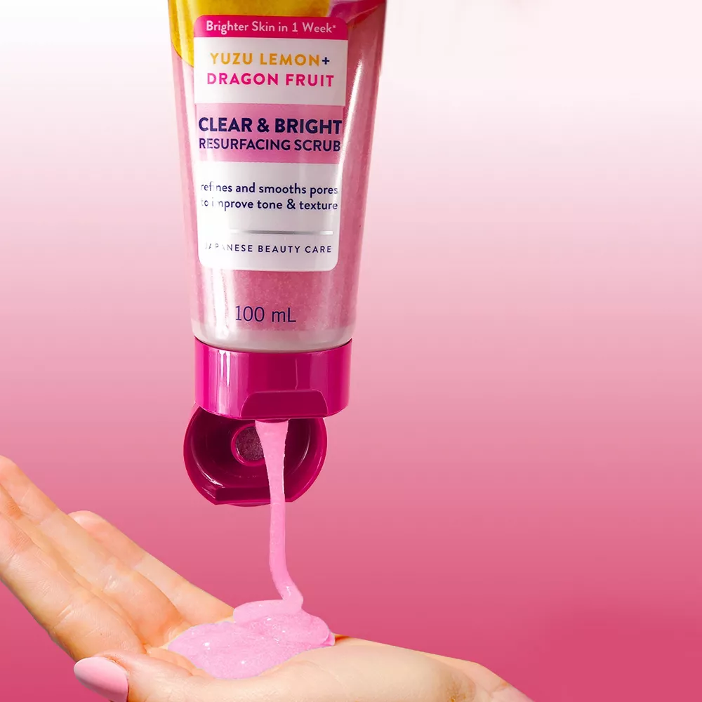 Get brighter skin in 1 week with this face exfoliator! Biore Brightening Exfoliating Scrub is the best exfoliator for face, with natural ingredients and Biore’s proven Japanese skincare technology. The best face wash for clogged pores, this Biore face wash deep cleans, re-texturizes & revitalizes uneven skin. Formulated with Yuzu Lemon and Dragon Fruit, this vitamin c face wash brightens and balances the skin for a glowing complexion. Visibly reduce the appearance of pores with this exfoliating face wash for an instant boost of brightness. Achieve fresh, bright, and breathable skin with Biore’s vitamin c facial cleanser! Satisfaction Guarantee. Limitations may apply.