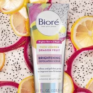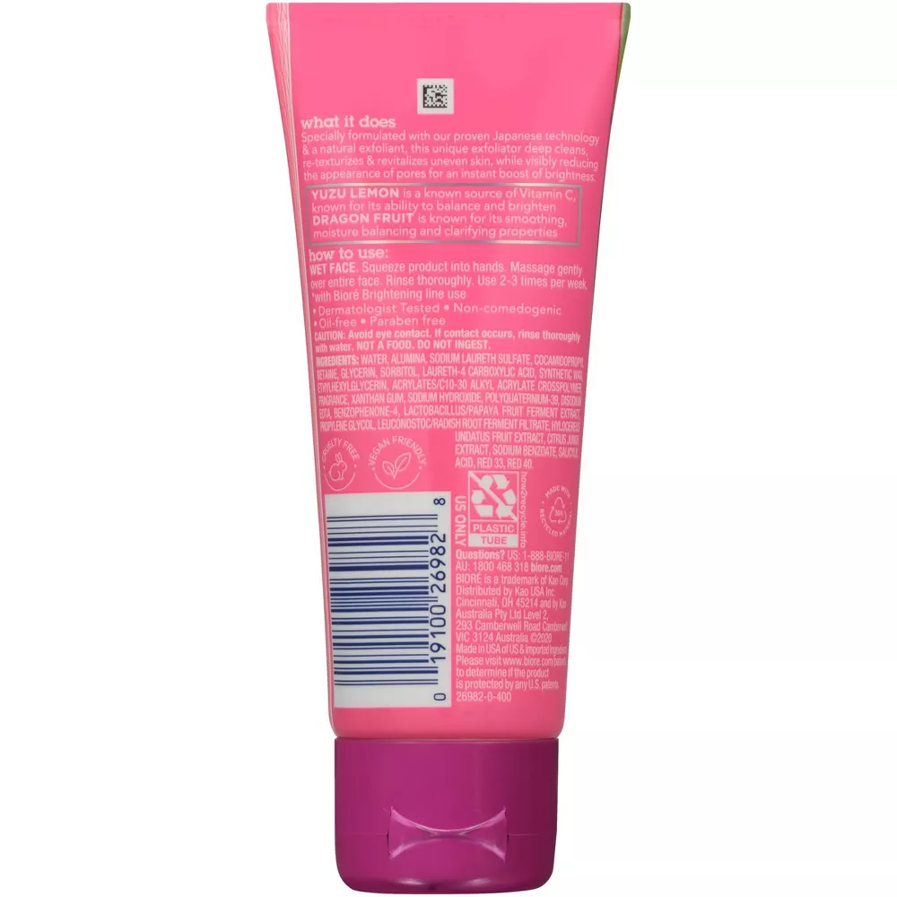 Biore Brightening Exfoliating Scrub, For All Skin Types, Unclog Pores Yuzu Lemon + Dragon Fruit – 3.5 fl oz