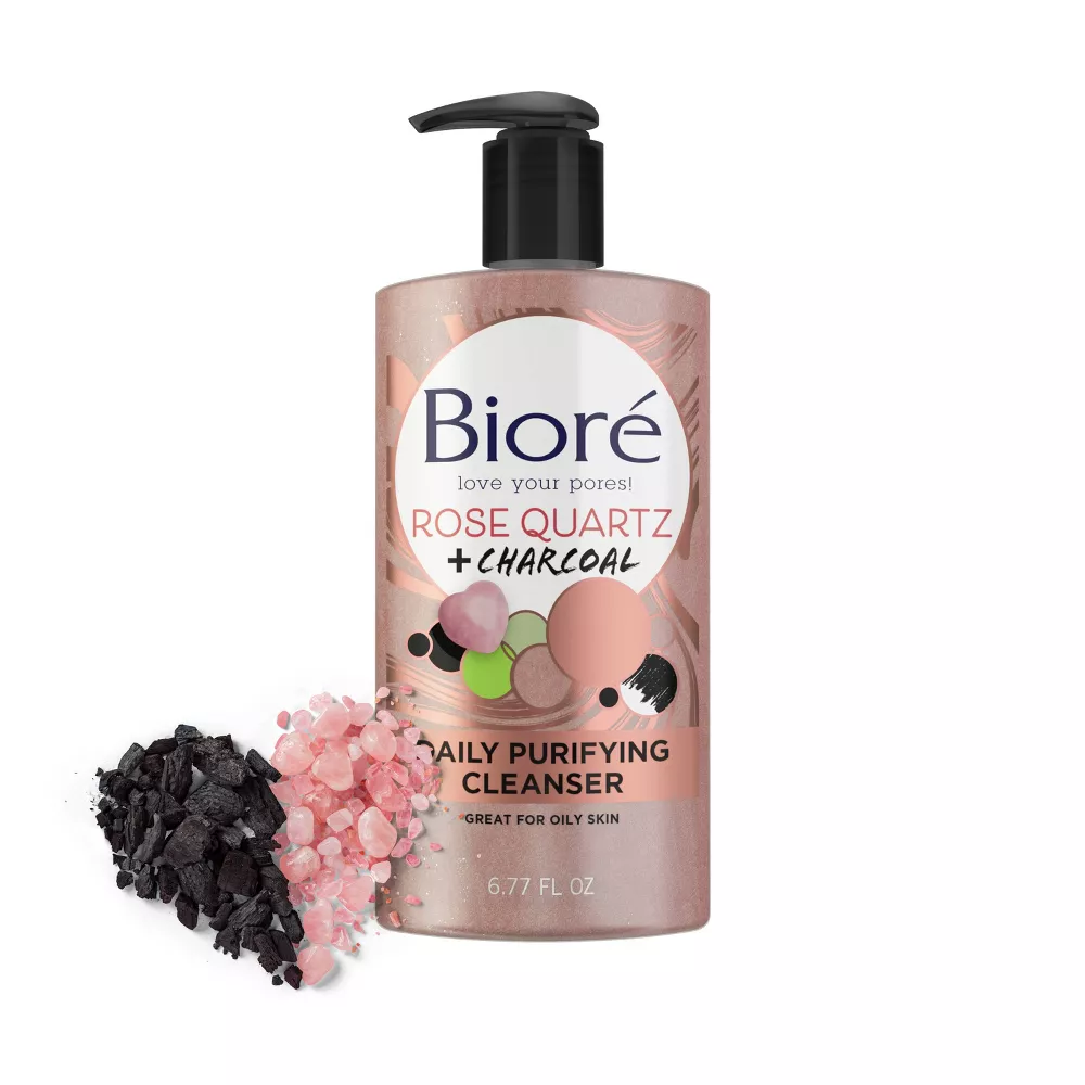 Love your pores, love yourself! The Biore Rose Quartz + Charcoal Daily Purifying Cleanser radiates self-love. This exfoliating facial cleanser cleans 2x better than basic cleansers and penetrates deep into pores to remove excess dirt, oils, and impurities. As a charcoal and rose quartz pore cleanser, it energizes your skin as one of Biore’s anti-blemish solutions. This oil-free acne face wash is dermatologist tested and non-comedogenic. For optimal results use daily. Wet face. Pump cleanser into hands and work into a lather. Massage over entire face. Rinse thoroughly with water. Satisfaction Guaranteed.