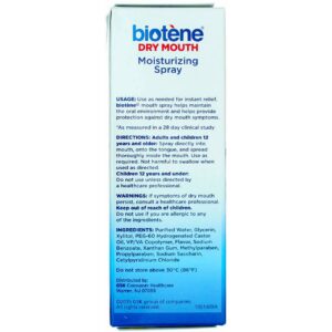 - Use Biotène Moisturizing Mouth Spray throughout the day as needed. To relieve your symptoms, spray directly into your mouth, onto the tongue, and spread thoroughly inside the mouth.