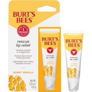 - RESCUE LIP RELIEF: One 0.35 oz. tube of Burt’s Bees Honey Vanilla Rescue Lip Relief Lip Balm with beeswax, shea and cocoa butter to hydrate and replenish extremely dry lips