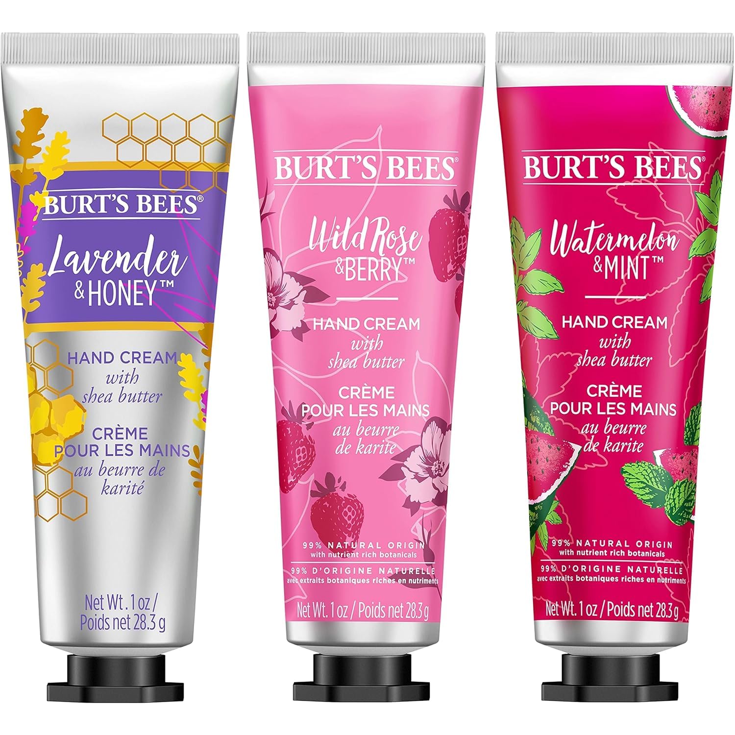 Burt’s Bees Shea Butter Hand Cream Trio Set – Lavender Honey, Watermelon Mint & Wild Rose Berry (3-Pack)