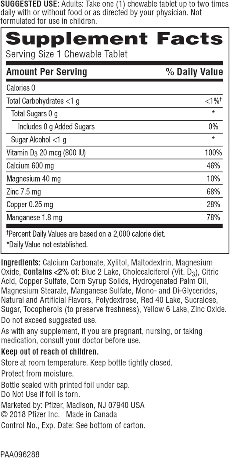 Caltrate Chewables 600 Plus D3 Plus Minerals Calcium Vitamin D Supplement, Cherry, Orange and Fruit Punch – 60 Count