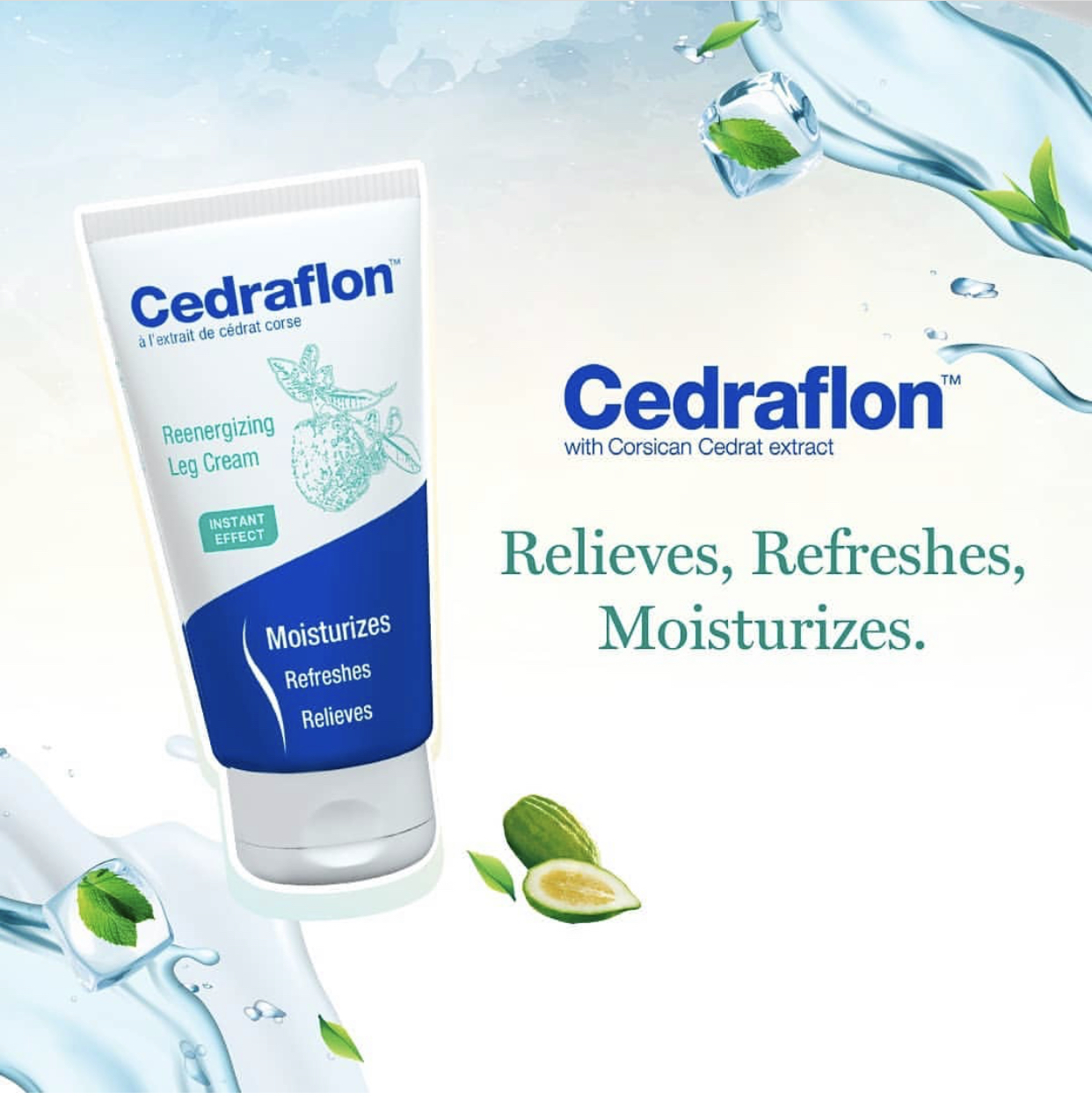 Cedraflon is formulated with pure Corsican citron extracts combined with menthol, a blend that not only relieves the feeling of tired legs immediately, but also tones and hydrates the skin