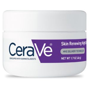 Suitable for all skin types, CeraVe Skin Renewing Night Cream features a complex of biomimetic peptides, hyaluronic acid, and 3 essential ceramides that work together to lock in skins moisture and help restore your skin’s protective barrier overnight. Our non-greasy, intensely moisturizing skin renewing night cream is designed to soften and renew the look of tired skin, and our patented MVE technology encapsulates ceramides to ensure efficient delivery within the skin’s barrier and slow release over time. Supporting your protective skin barrier, long after you’ve finish applying —so you can wake up looking rested and rejuvenated.