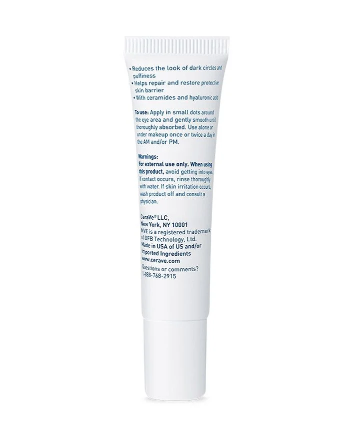 CeraVe Eye Repair Cream is ophthalmologist-tested and features a non-greasy, fast-absorbing, fragrance-free formula that works to minimize the appearance of dark circles and eye puffiness. It’s formulated with three essential ceramides, hyaluronic acid, niacinamide, and a Marine & Botanical Complex to help brighten your entire eye area. Plus, MVE technology continually releases moisturizing ingredients for all-day hydration.