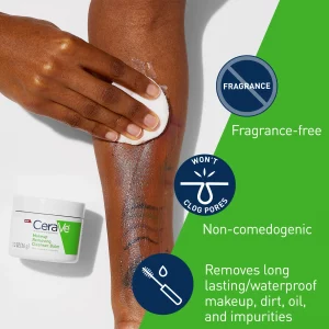 Developed with dermatologists, Cerave hydrating makeup melting cleansing balm is formulated with 3 essential ceramides and plant-based jojoba oil. Ceramides help maintain the skin’s protective barrier while plant-based Jojoba Oil helps retain skin moisture as you cleanse, leaving your skin feeling nourished, soft and comforted long after cleansing. CeraVe Cleansing Balm makeup remover effectively dissolves the most long-lasting makeup, gently removes dirt, oil and impurities, moisturizes the skin and leaves skin feeling comforted with non-greasy feel. This makeup cleansing balm is easy to rinse off and does not leave residue on the skin. Skin appears smooth, clean, and radiant after using this balm cleanser. This makeup remover is suitable for all skin types including sensitive skin. Additional benefits include: Alcohol-free, Fragrance Free, Non-comedogenic (won’t clog pores!), Soap free, Dermatologist Recommended, Paraben Free, and Hypoallergenic. Instructions: Scoop a pearl-sized amount. Massage gently onto dry skin in a circular motion. Rinse well and pat dry. Avoid direct contact with eyes.