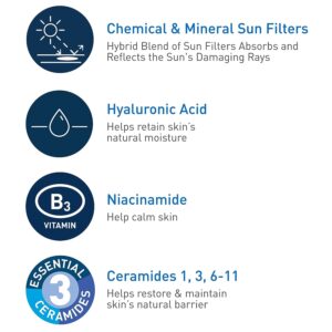 CeraVe Hydrating Sheer Sunscreen SPF 30 for Face and Body | Mineral Sunscreen & Chemical Sunscreen with Zinc Oxide, Hyaluronic Acid, Niacinamides and Ceramides| 3 Ounces