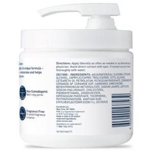 Developed with dermatologists, CeraVe Moisturizing Cream contains hyaluronic acid to help retain the skin’s natural moisture =. CeraVe Moisturizing Cream’s unique formula is gentle, non-irritating, provides 24-hour hydration and helps restore the protective skin barrier with three essential ceramides (1, 3, 6-II). Suitable for use on the entire body, face, and even as a hand cream for dry hands. Accepted by the National Eczema Association.