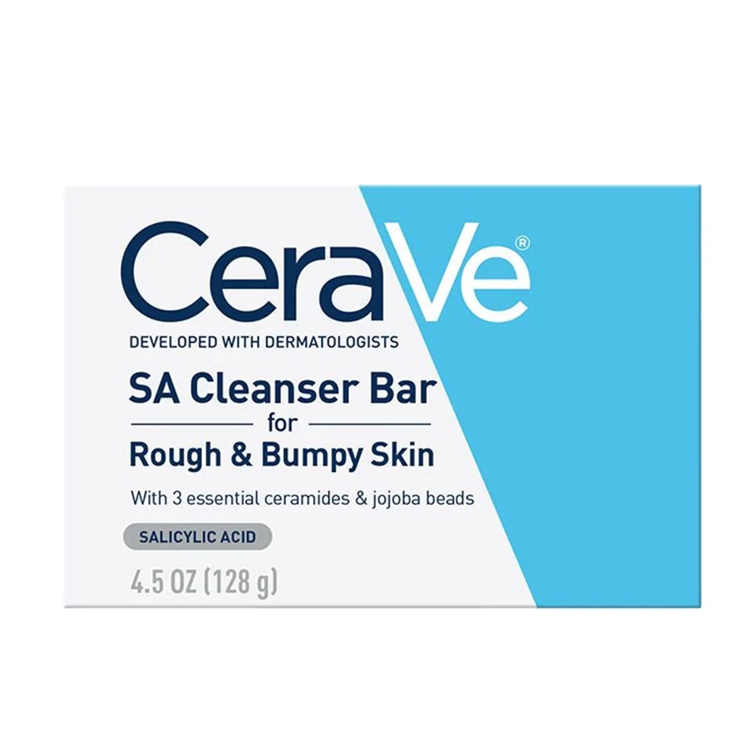 Developed with dermatologists, CeraVe SA Cleanser Bar for Rough & Bumpy Skin features dual action exfoliation in convenient bar form. This gentle, soap-free bar provides chemical exfoliation with salicylic acid and physical exfoliation with spherical jojoba beads to gently sweep away dead skin cells and improve the look and feel of rough, bumpy skin. Formulated to deeply cleanse and thoroughly remove dirt and oil, it also softens and smoothes skin without disrupting the skin’s protective barrier or leaving it feeling tight or dry.