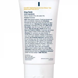 CeraVe Hydrating Sunscreen Sheer Tint lotion provides broad-spectrum protection with 100% mineral filter sunscreen and instantly leaves skin with a natural glow without any white-cast. This non-greasy formula provides all day hydration with three essential ceramides that help restore the skin’s natural barrier and lock in moisture.