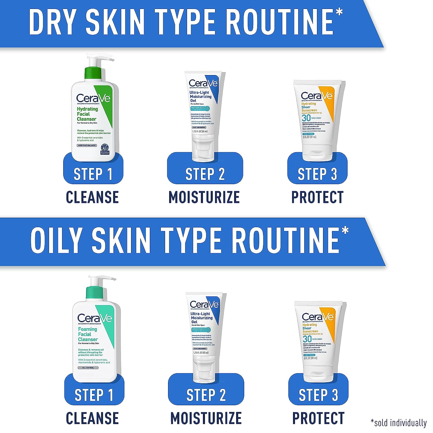 CeraVe Ultra-Light Gel | Facial Moisturizing Gel with Ceramides, Niacinamide, Hyaluronic Acid | Fragrance Free |1.75 FL Oz