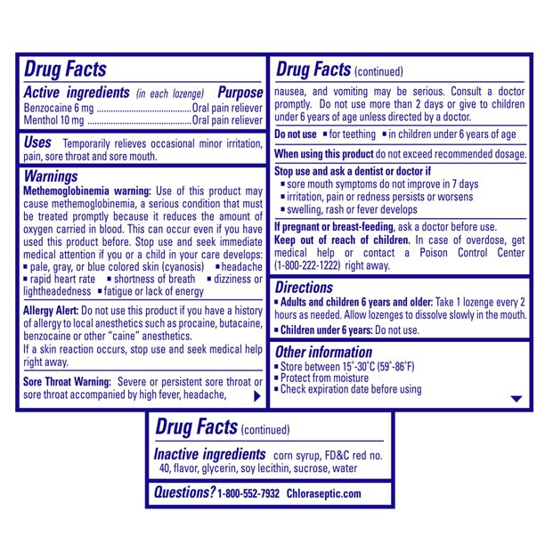 Chloraseptic is the Number One Sore Throat Brand (1). With Chloraseptic Sore Throat Lozenges and Sprays, you get fast acting relief in a variety of flavors from a brand that has been relieving sore throats for over 55 years. For on-the-go relief, try Chloraseptic Sore Throat Lozenges! This fast-acting sore throat remedy will be handy to keep in the medicine cabinet for fast, easy access at home or take it on-the-go for relief anytime or anywhere. Lozenges come in flavors like Wild Berries, Citrus and Warming Honey Lemon and also in Sugar-Free Wild Cherry and are for use with adults and children 6 years of age and over.