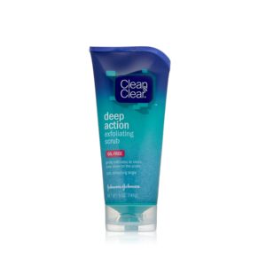 - 5-ounce Clean & Clear Oil-Free Deep Action Exfoliating Facial Cleansing Scrub to help clean deep down to the pores and exfoliate surface skin to remove dirt, oil and makeup