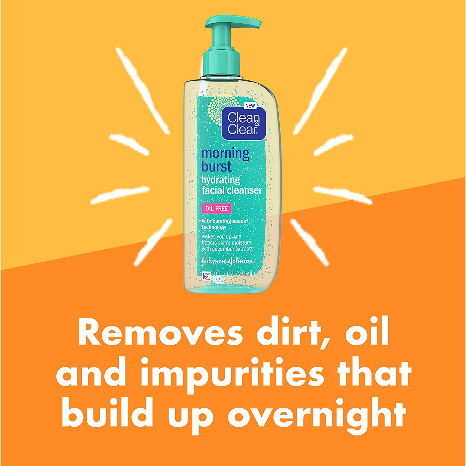 - 8-fluid ounces of Clean & Clear Morning Burst Hydrating Facial Cleanser with cucumber and green mango extract to nourish and refresh skin while removing dirt, oil & impurities that build up overnight