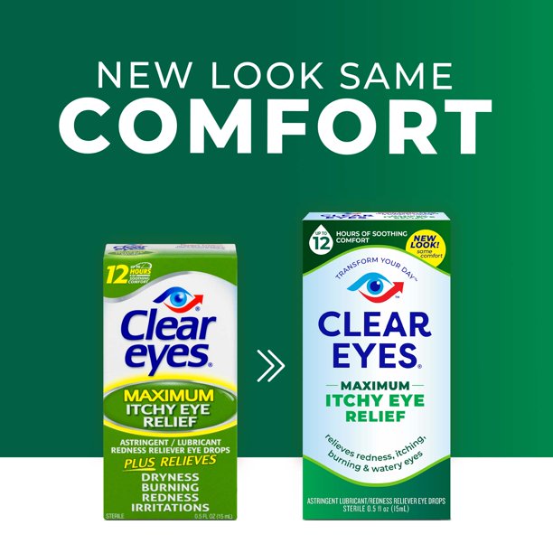 Clear Eyes Maximum Itchy Eye Relief Eye Drops provide soothing relief for itchy and irritated eyes. The maximum strength astringent in Clear Eyes Maximum Itchy Eye Relief Eye Drops helps to relieve symptoms caused by environmental irritants. Clear Eyes Maximum Itchy Eye Relief Eye Drops soothe and moisturize to relieve redness, itching, burning and watery eyes and help to protect against further irritations.