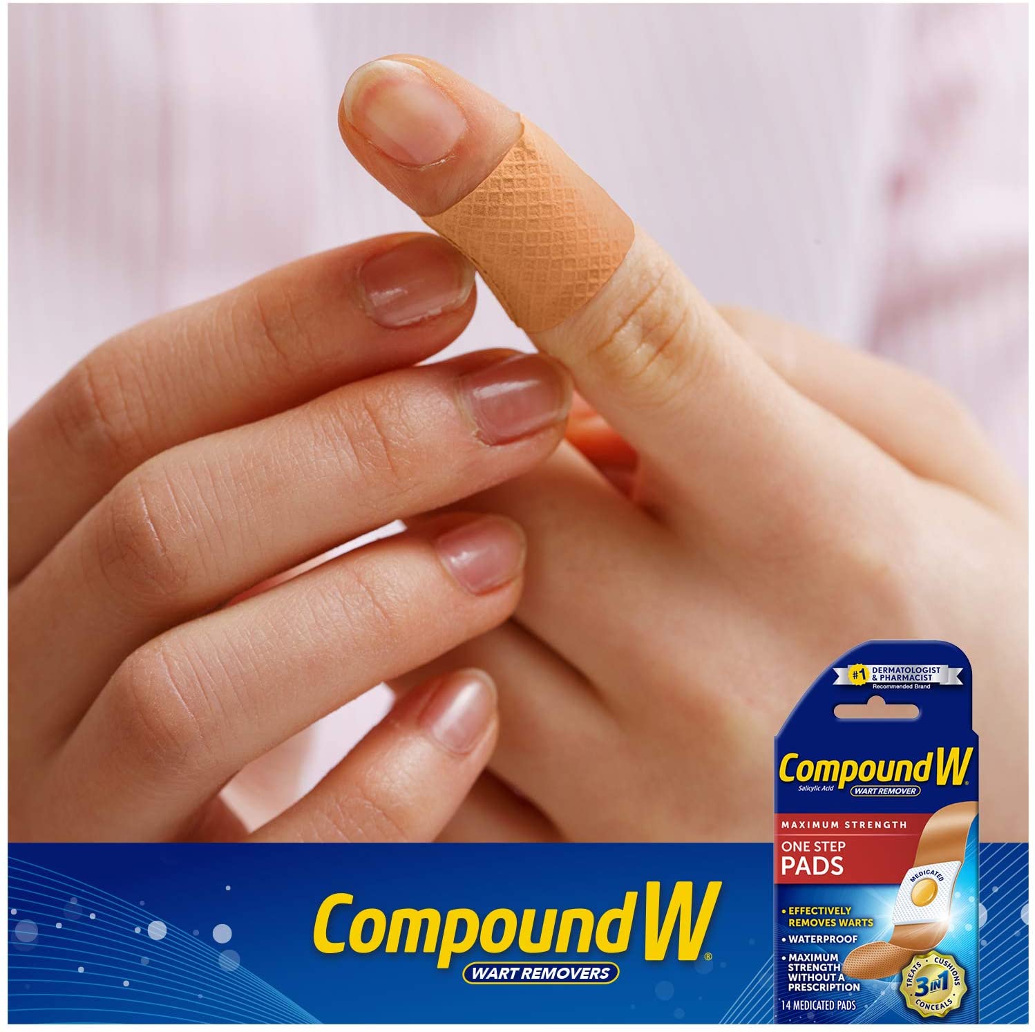 Compound W One Step Pads conceal, protect and remove stubborn common warts with maximum strength medication. The wart stops here. Compound W offers advanced wart treatment technology to treat even the toughest, most stubborn warts. From gels and liquids to freezing methods, there’s a Compound W product that’s just right for you