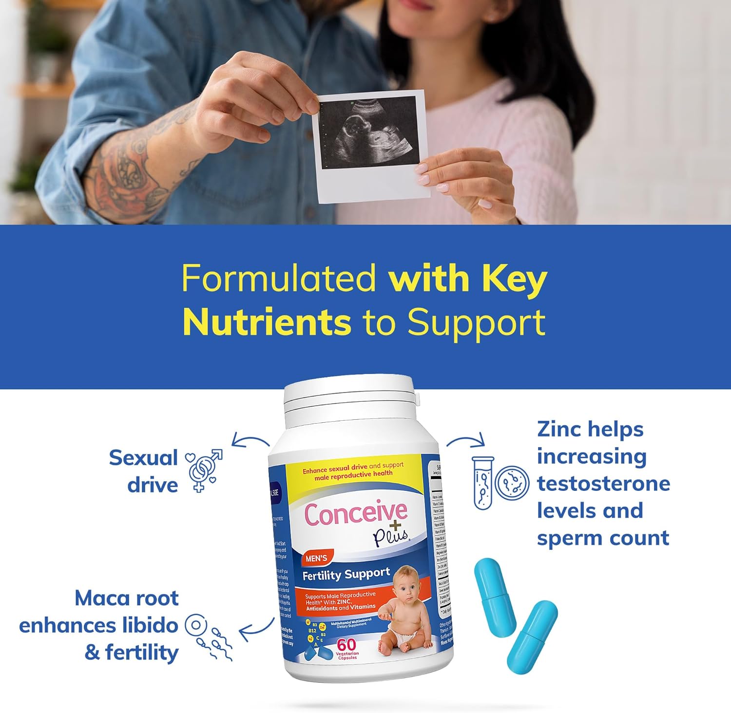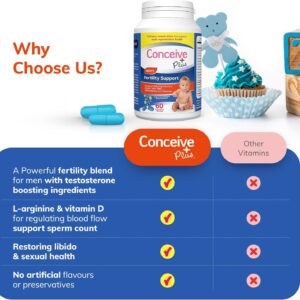CONCEIVE PLUS Male Fertility Supplement – Men’s Fertility Support, Fertility Supplements for Men, Conception Aid Vitamins, 60 Capsules, 30 Day Supply