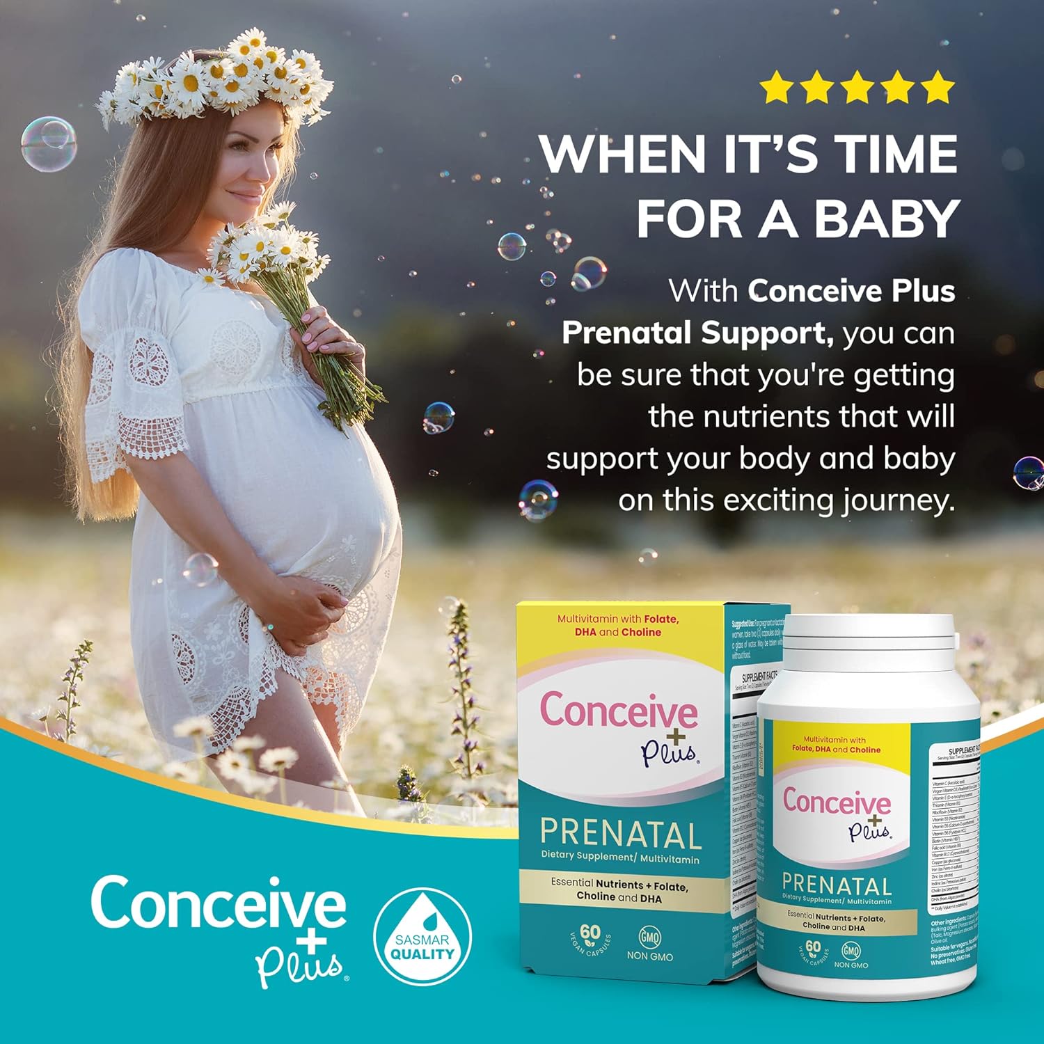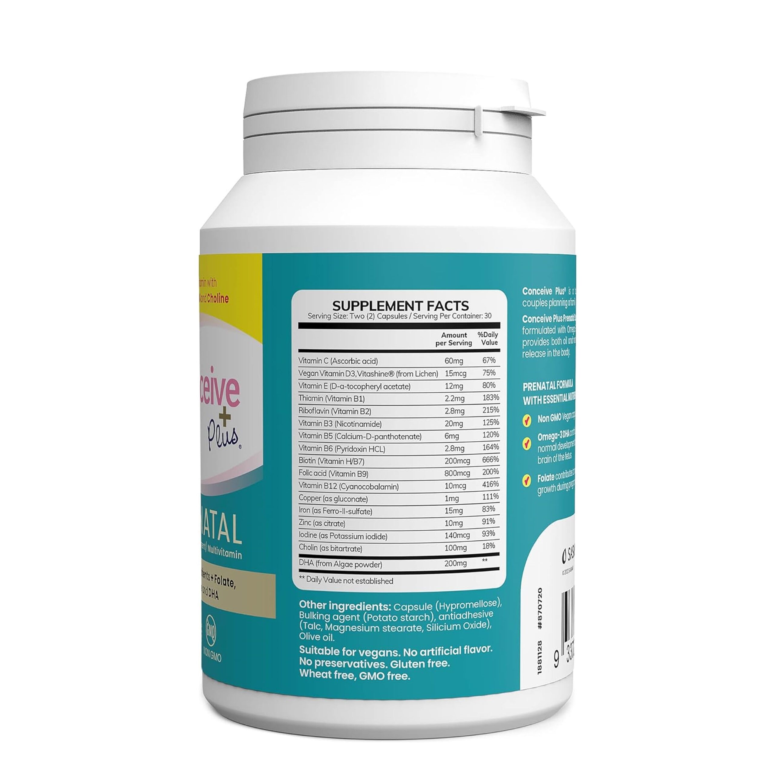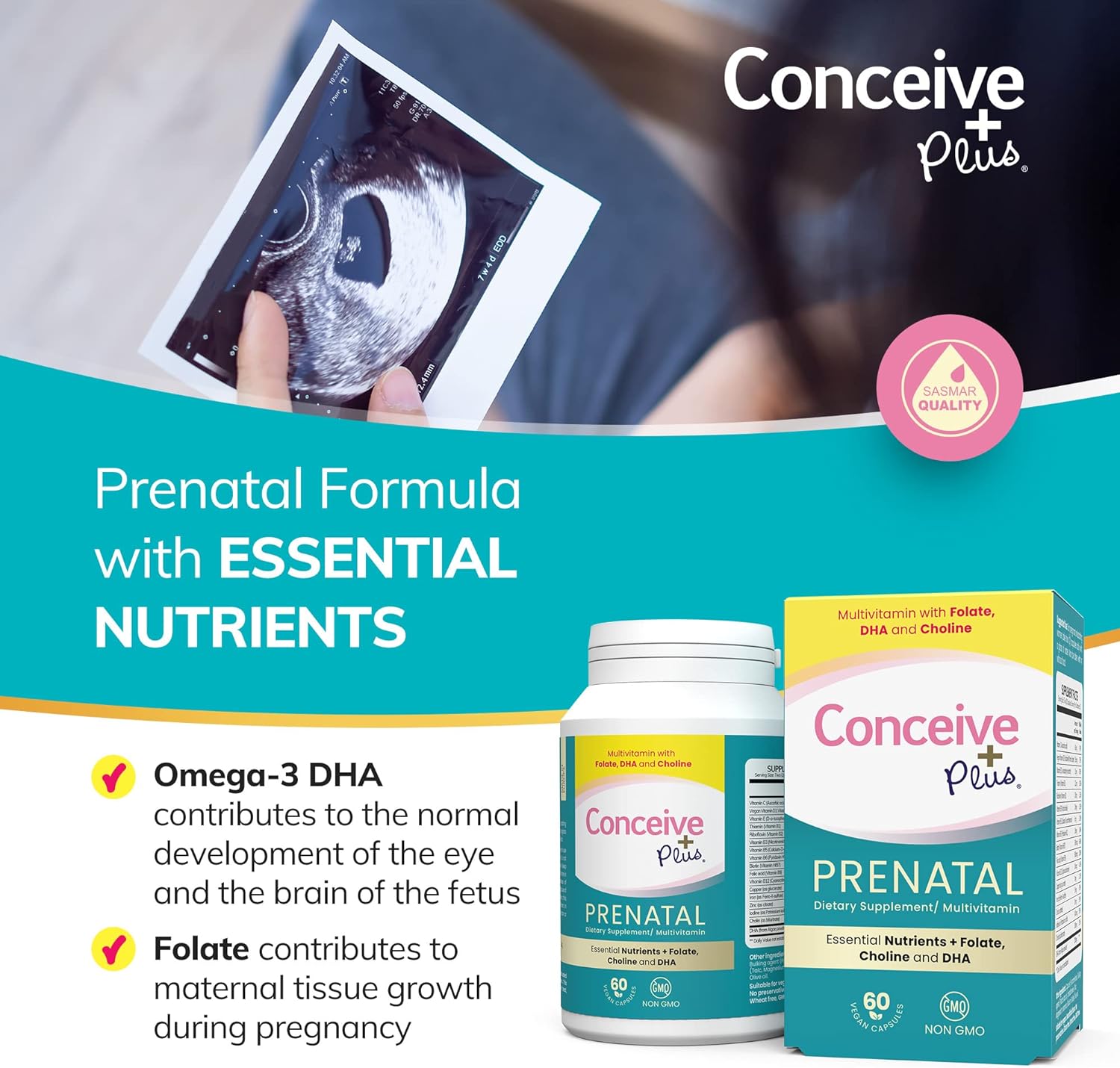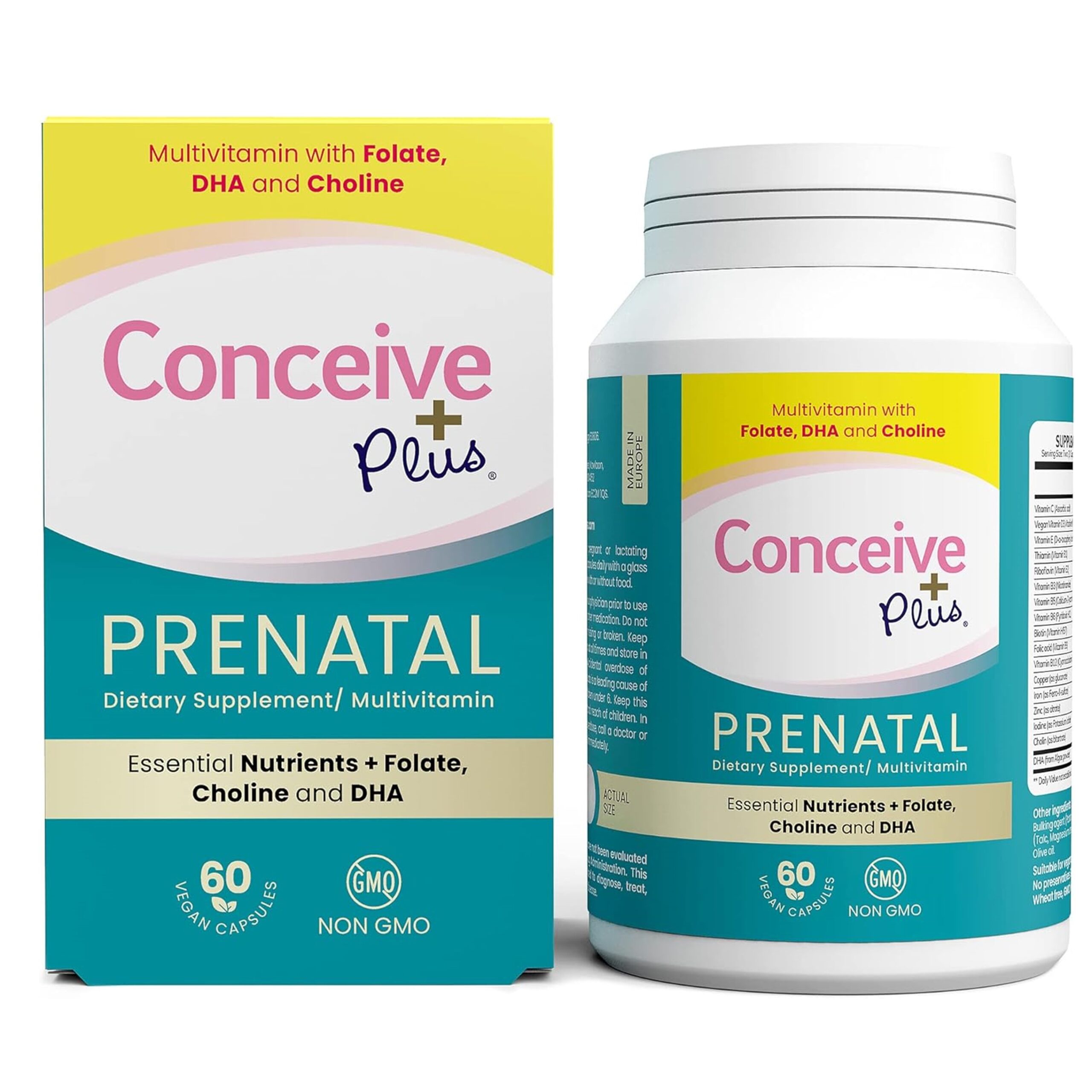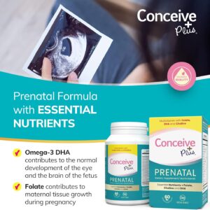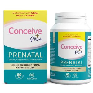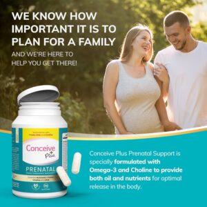 CONCEIVE PLUS Prenatal Vitamins – DHA, Choline + Folate, Healthy Pregnancy, Non-GMO, 30 Days Supply, 60 Capsules
