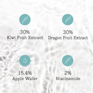 - Key Ingredient: Developed to reduce waste! 30% Kiwi Fruit Extract, 30% Dragon Fruit Extract, 15.4% Apple Water, 2% Niacinamide