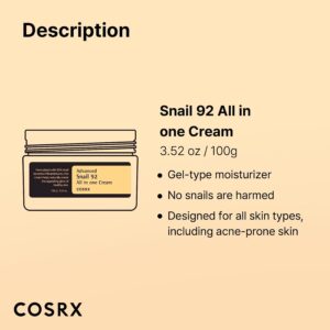 Long-lasting Hydration: Infused with 92% of snail mucin (also called Snail Secretion Filtrate), this cream builds a moisture barrier to plump, hydrate, and soothes skin. This everyday multi-solution cream glides onto the skin and revives skin radiance.