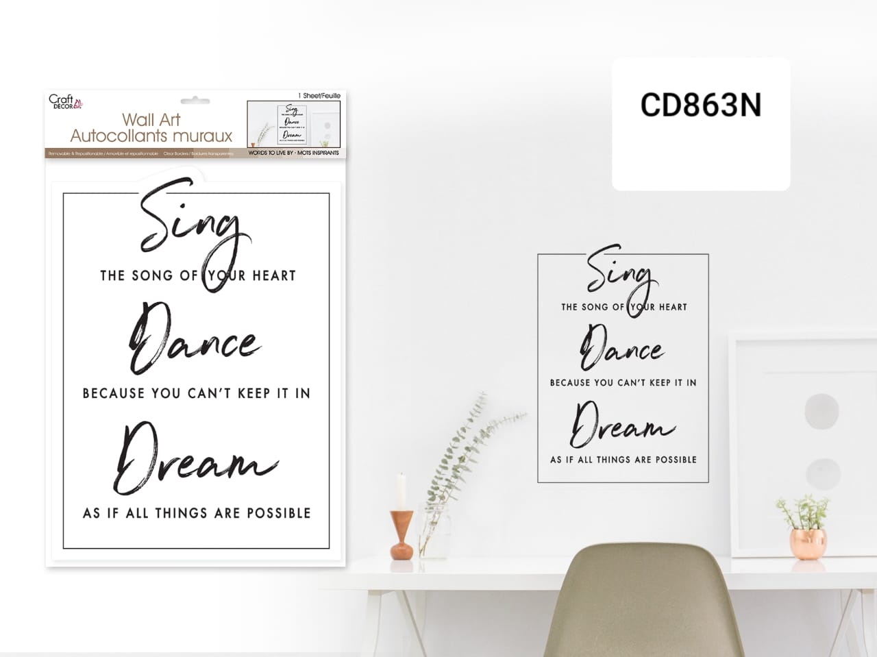 Craft Decor Wall Art Stickers – Sing– 12×16