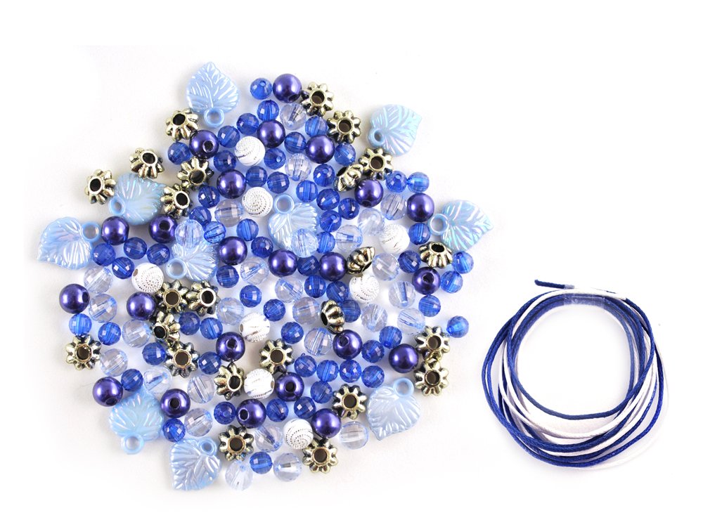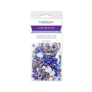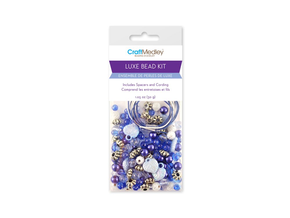 Craft Medley Acrylic Bead, 30g, Luxe Kit with Spacers & Cording, Blue