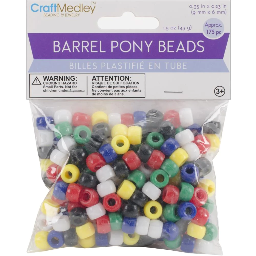 Craft Medley Barrel Pony Beads- Opaque Multicolor