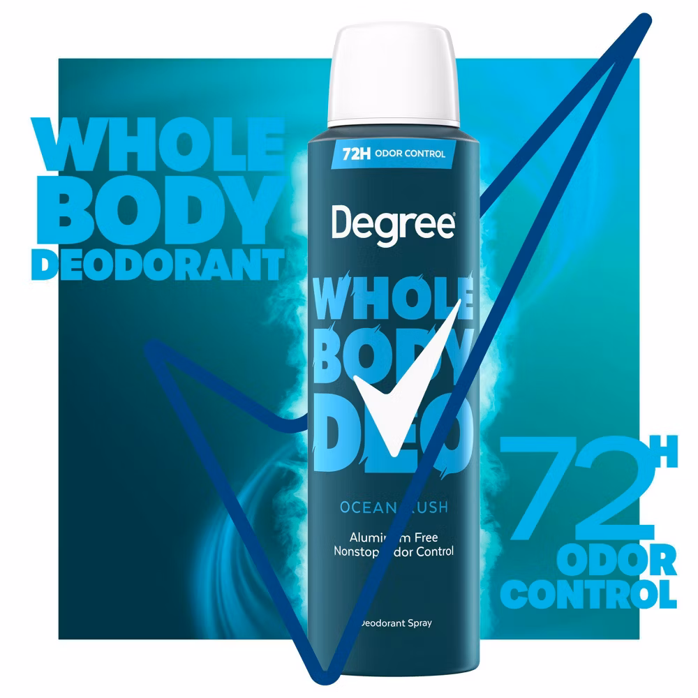 Degree Men’s Whole Body Deodorant Spray is your go-to for staying fresh and confident all day long. It is as affordable as it is effective: This deodorant provides up to 72 hours of odor protection, ensuring you remain unstoppable without breaking your wallet. It’s designed to be used anywhere you need it—pits, privates, body, and feet—making it a versatile addition to your daily routine. The fresh scent provides a dynamic and clean feel, ensuring you smell amazing no matter what your day throws at you. Dermatologist-tested formula and is aluminum free. Plus, it leaves no residue or white marks on your clothes, so you can move freely without worrying about stains. Application is simple and easy: just hold the spray 6 inches from your skin and spray where you want to fight odor. Avoid your face and let it dry for a clean, fresh feeling. Whether you’re hitting the gym, running errands, or just going about your day, Degree’s Whole Body Deodorant Spray keeps you feeling fresh everywhere.